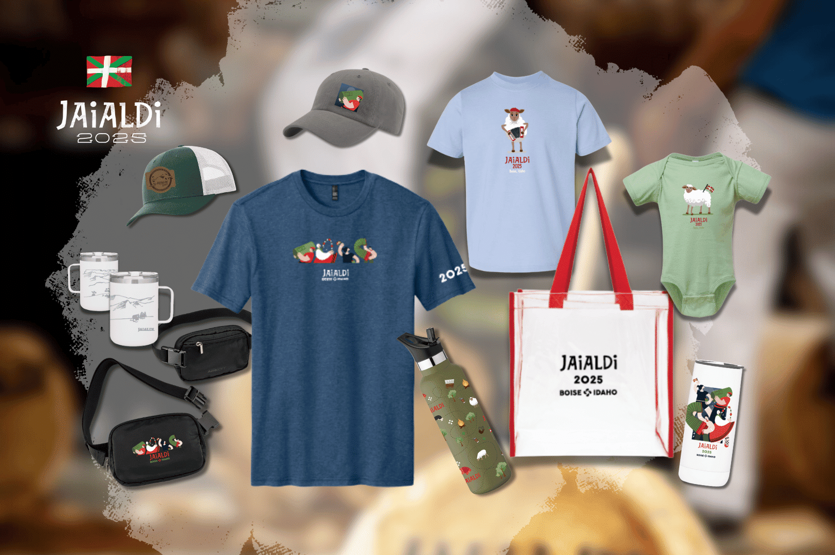 Attend the festival in style and bring home a wearable souvenir with Jaialdi merch! The Jaialdi merchandise booth will be open Thursday July 31 on the Basque Block from 1-5pm, and Saturday and Sunday August 2-3 at Expo Idaho.